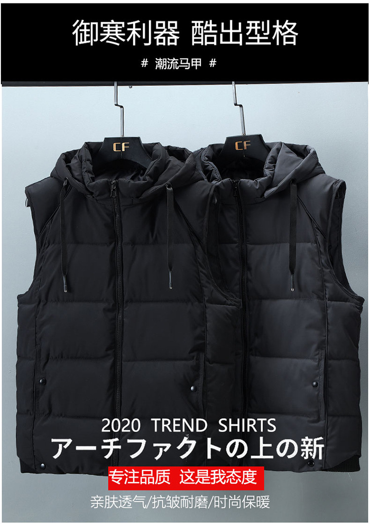 新型クロスボーダー人気秋冬メンズフード付きベスト