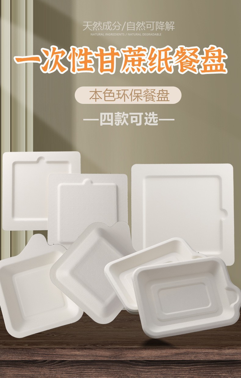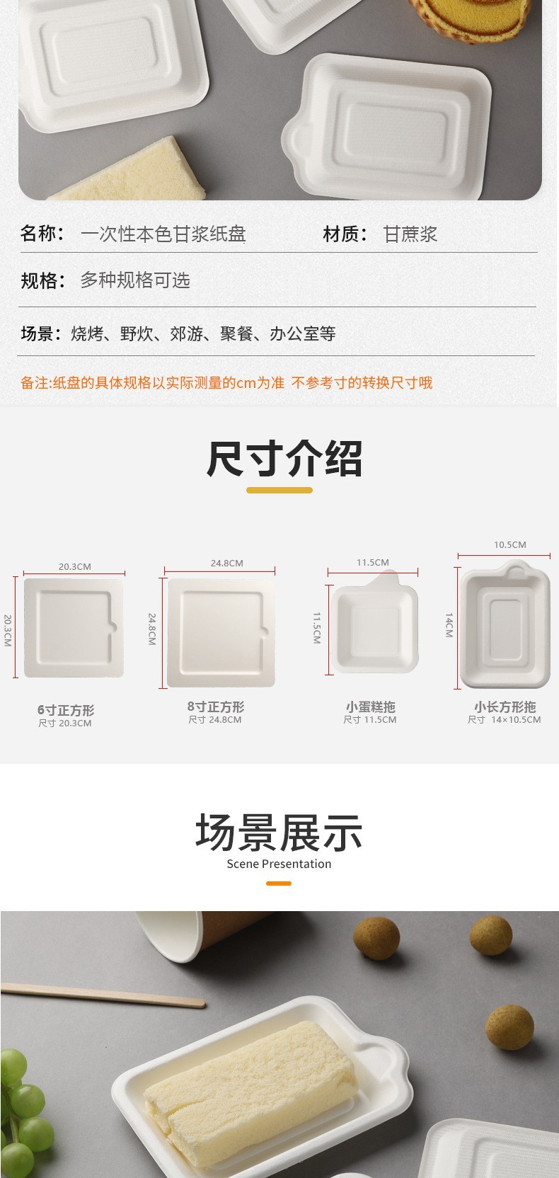 一次性盘子加厚小餐盘甘蔗纸碟长方形纸盘生日蛋糕盘家用烧烤餐具