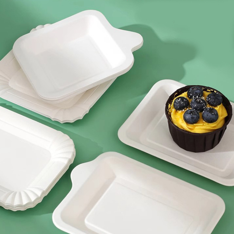 ケーキ皿使い捨て誕生日紙皿正方形パルプ皿4インチ6インチ8角皿紙トレイ分食皿