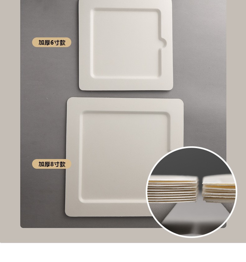 一次性纸盘子加厚正方形纸浆盘圆纸碟子长方形纸盘蛋糕碟纸浆纸盘