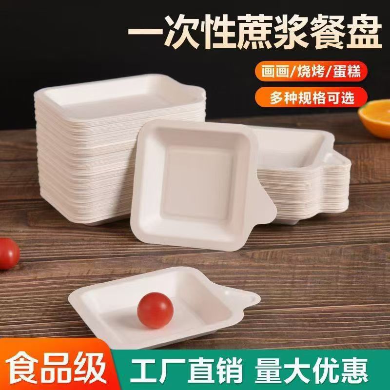 一次性可降解方形纸盘加厚纸浆盘绘画圆纸碟蛋糕甜品试吃分餐盘子