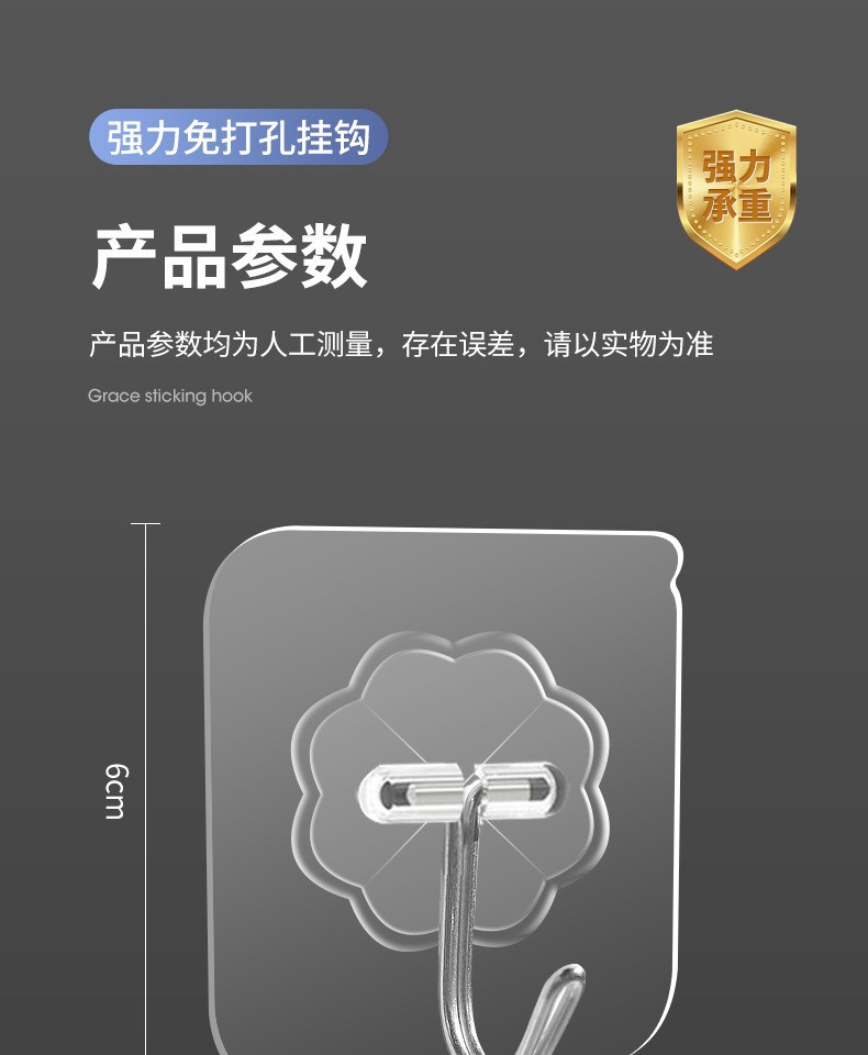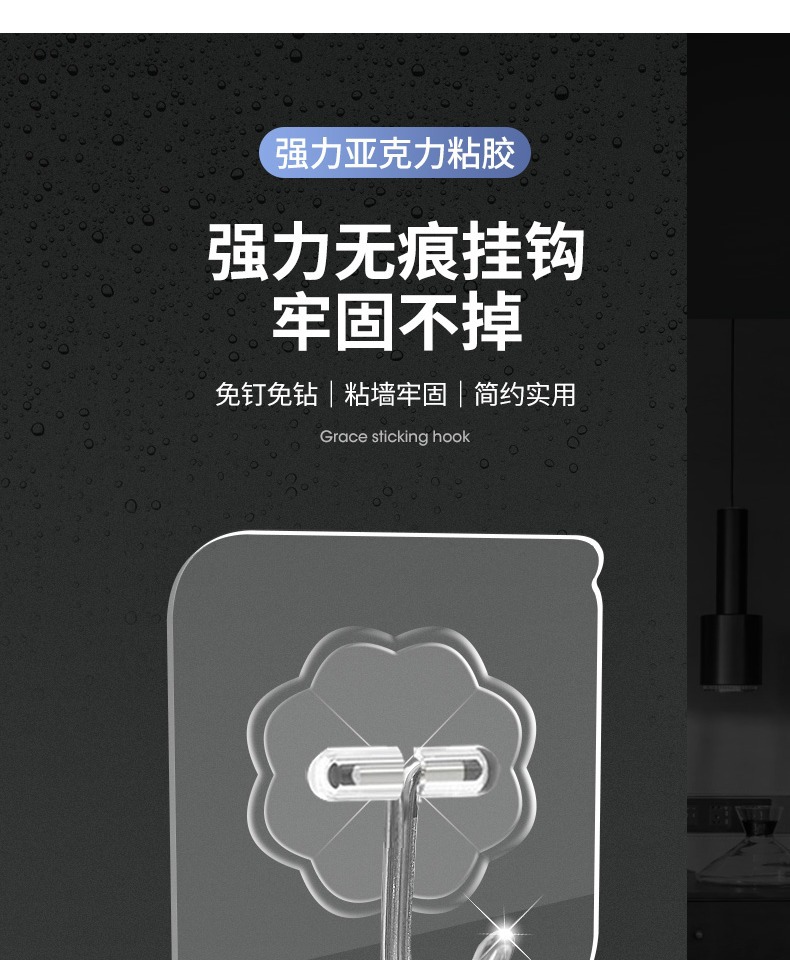 フックの強力な接着剤は壁の透明なフックを貼ります。穴を開けないでフックします。