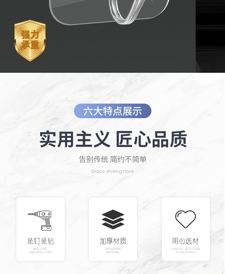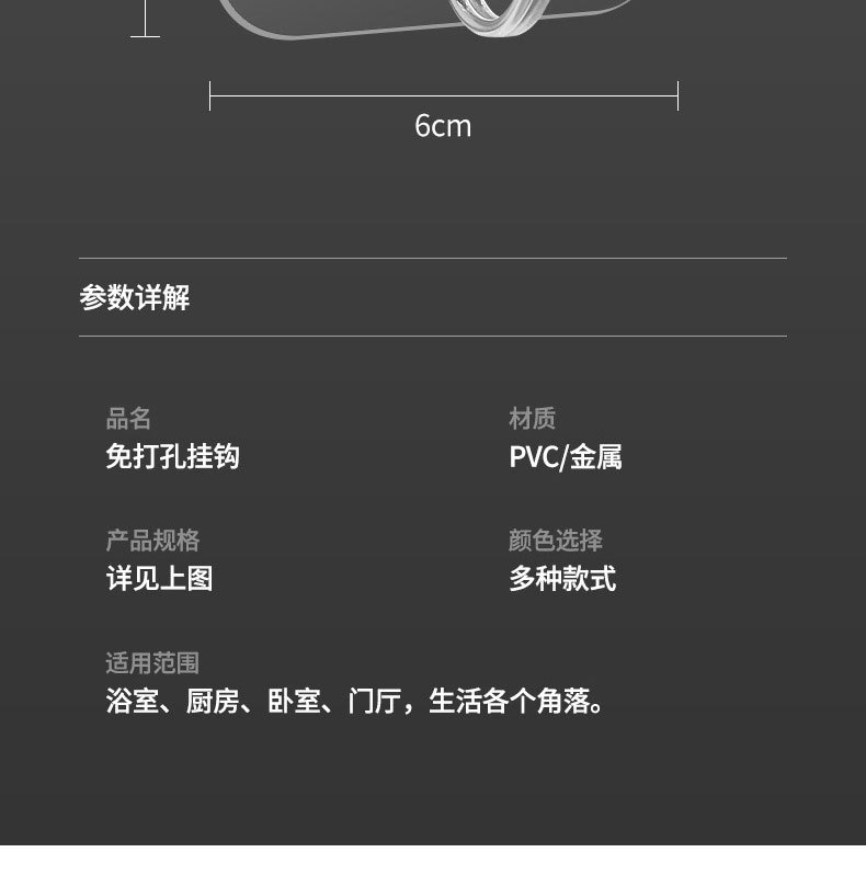 多機能強力無痕大フック透明伸線無穴フック特大ドア後壁コートフック
