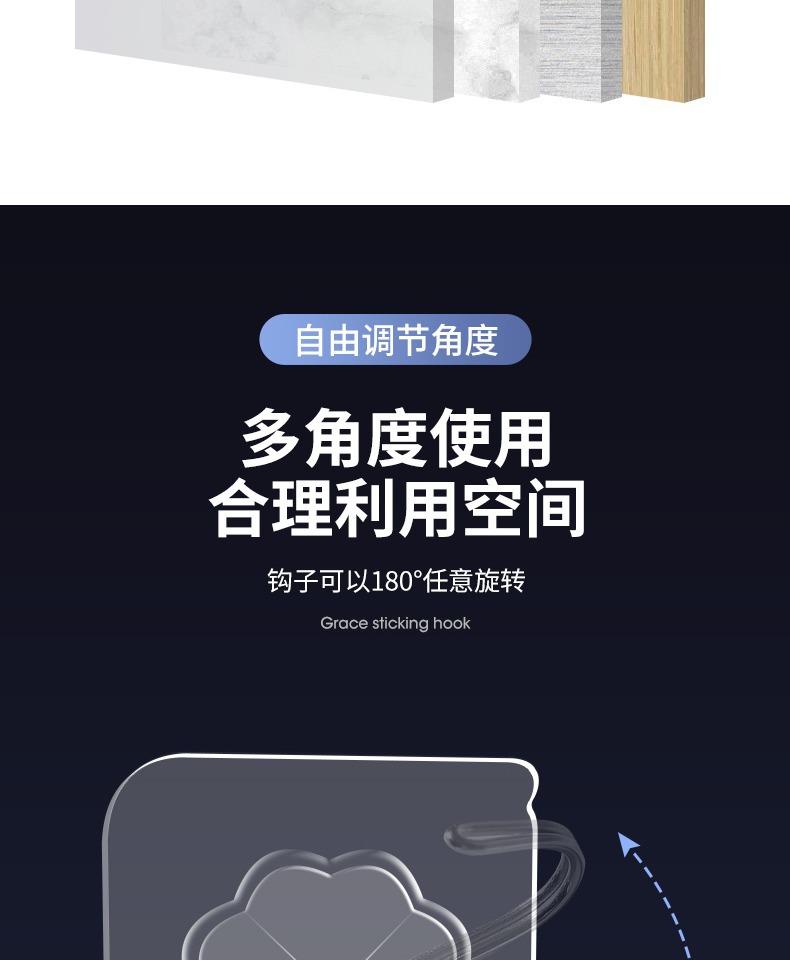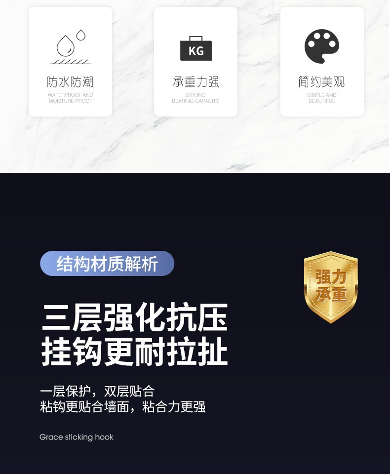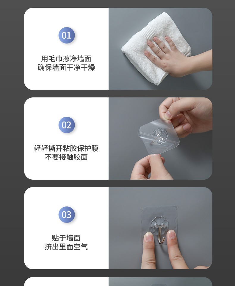 強力な粘着テープは軽くて豪華な連続フックを貼ります。穴を開けないでください。