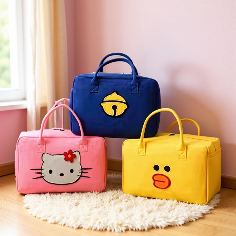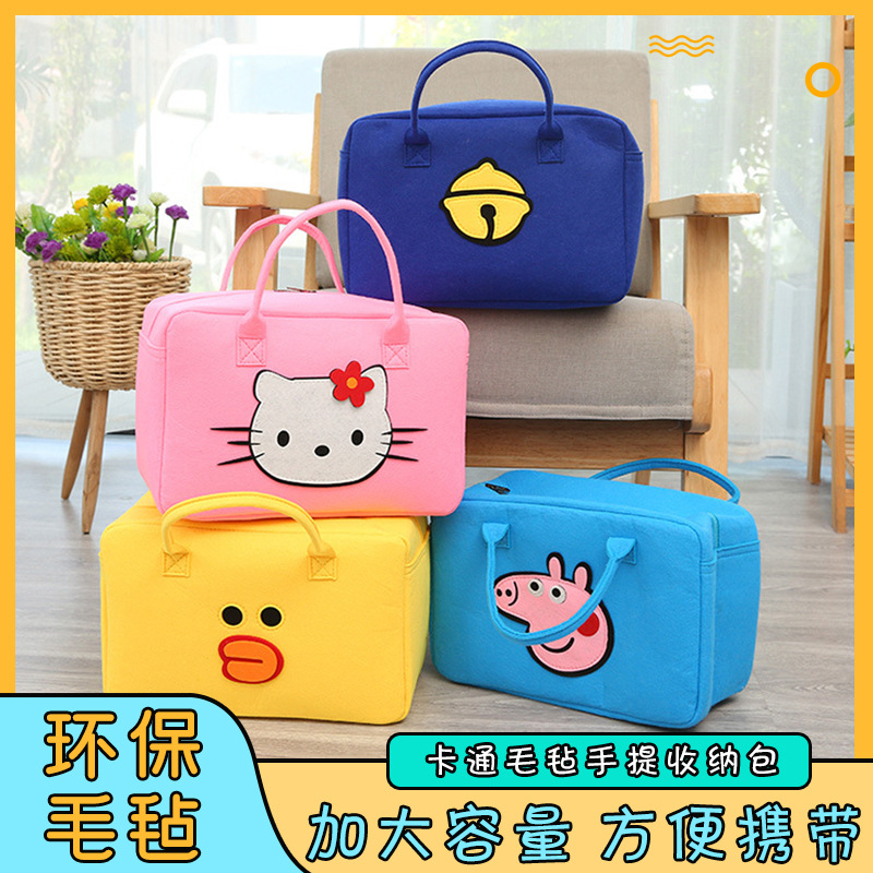 卡通包旅行包收纳手提包大容量儿童行李袋拉杆箱行李包毛毡包轻便
