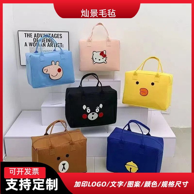 毛毡包大容量简约收纳女生妈咪包包logo卡通休闲便携购物包
