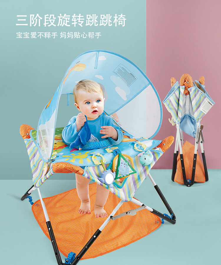 新しい多機能の赤ちゃんのフィットネスフレームのジャンプチェアは音楽布の本を持っています。
