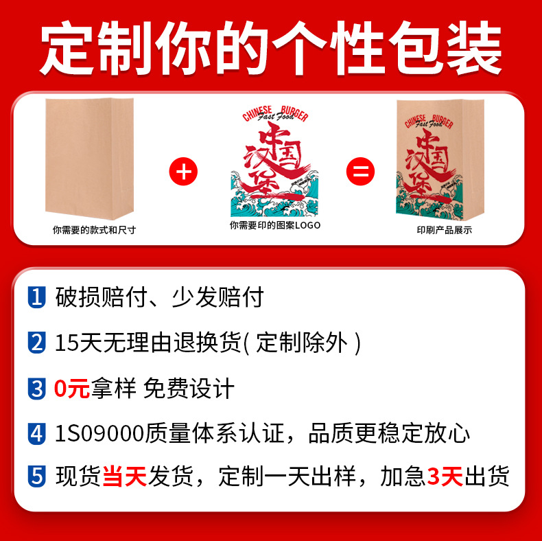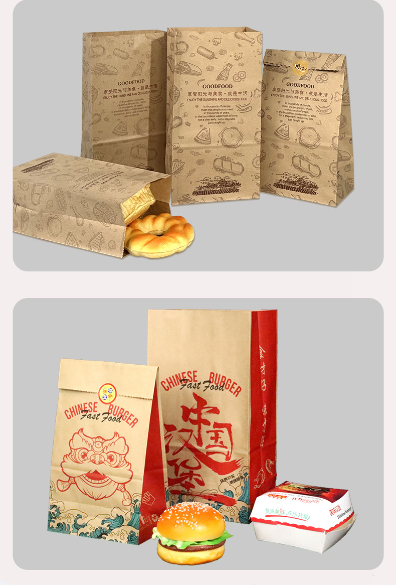 中国ハンバーグ包装袋の出前クラフト紙袋フライドチキンの包装袋の厚い焙煎袋の卸売り