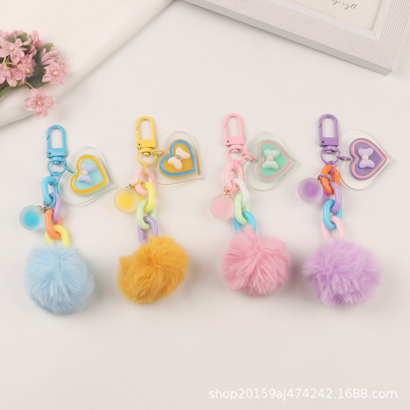 新商品の毛玉愛の車のキーホルダーのペンダントの小さい清新なカラーのキャンディーのボールの部品のイヤホンのカバーの女性のカバンの装飾