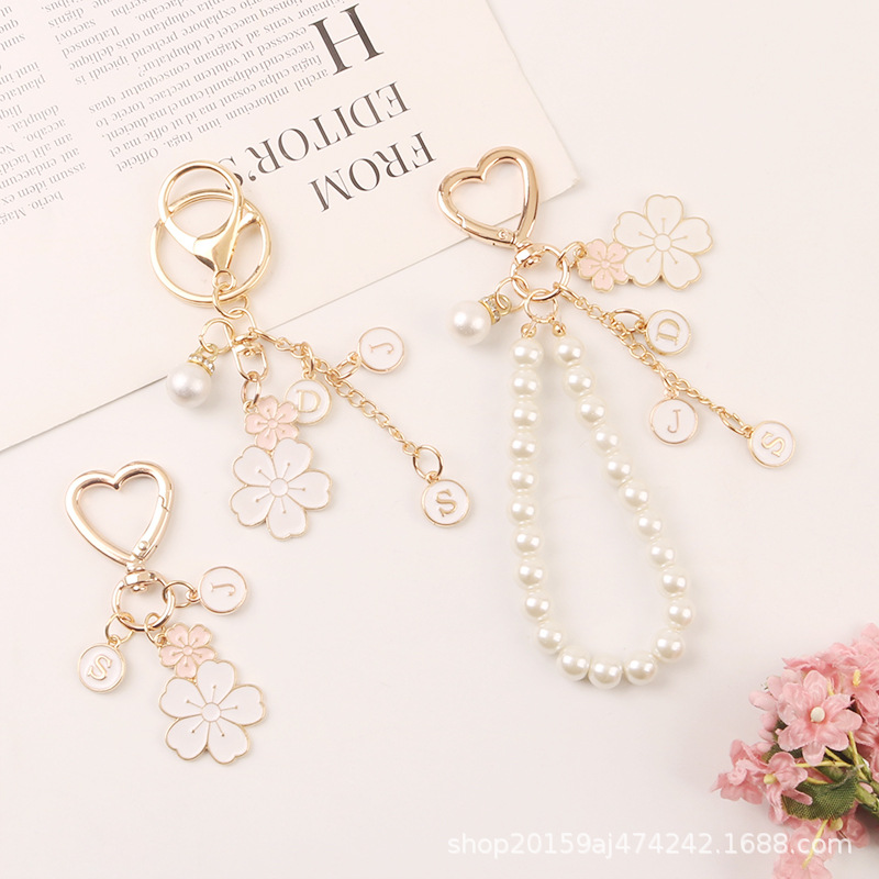 新型の甘いクールな風の真珠の蝶結びの玉のチェーンのキーホルダーのペンダントの個性的な携帯電話のチェーンのイヤホンのカバーは装飾を包みます。