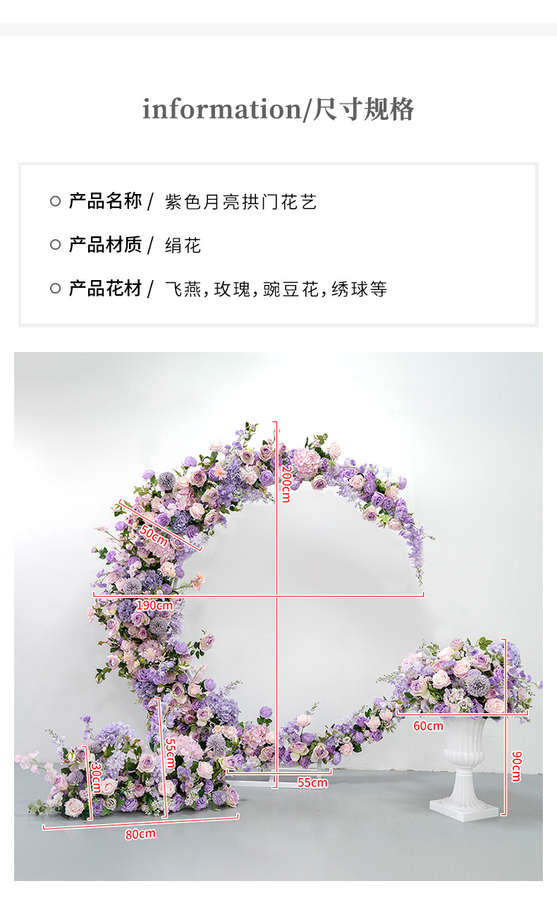 ヨーロッパ式の結婚式の月の花芸のスーツの紫色の生放送のショーウインドーの装飾の背景は偽の花芸の結婚祝いのアーチをシミュレーションします。