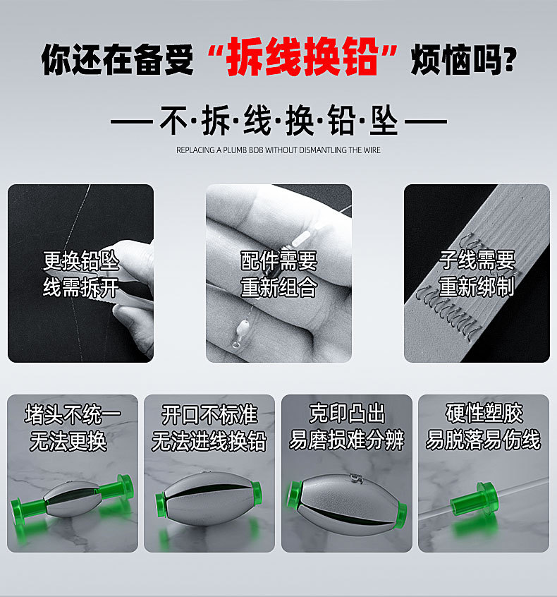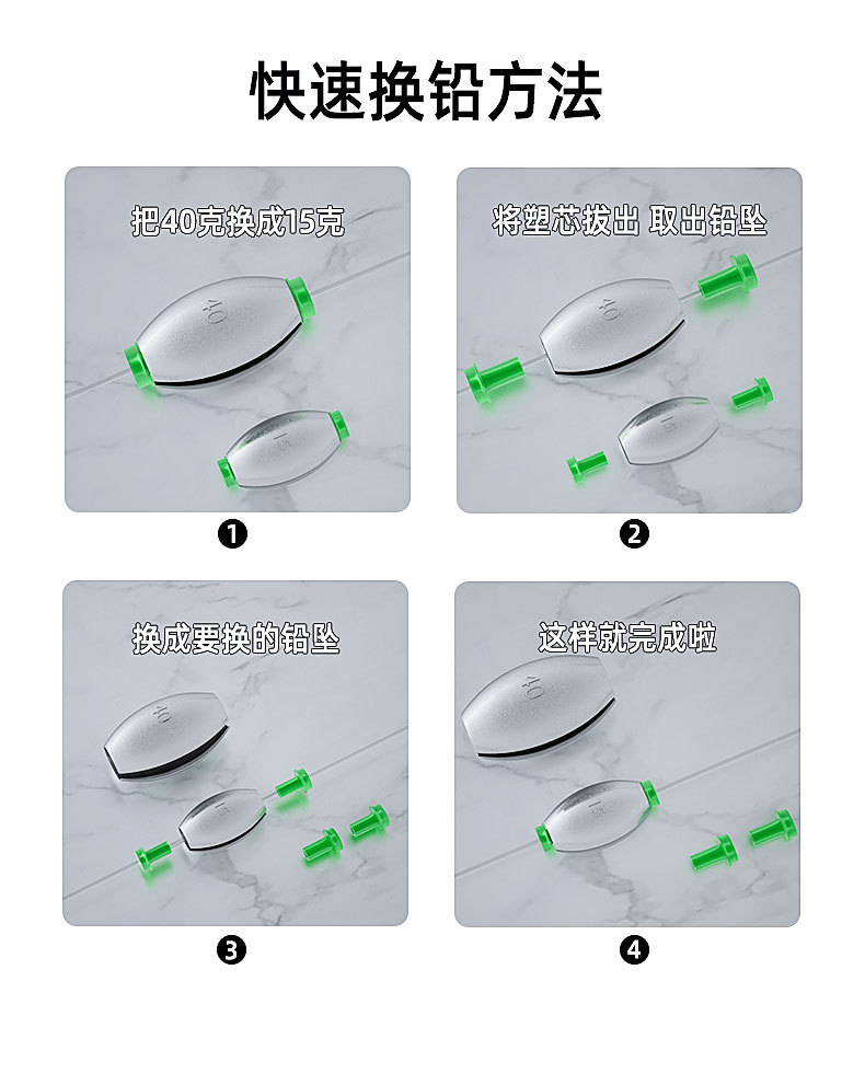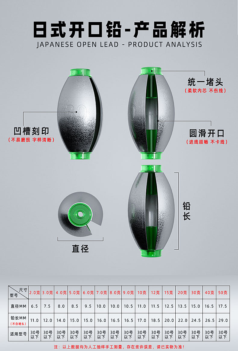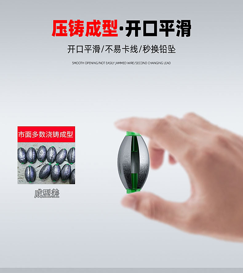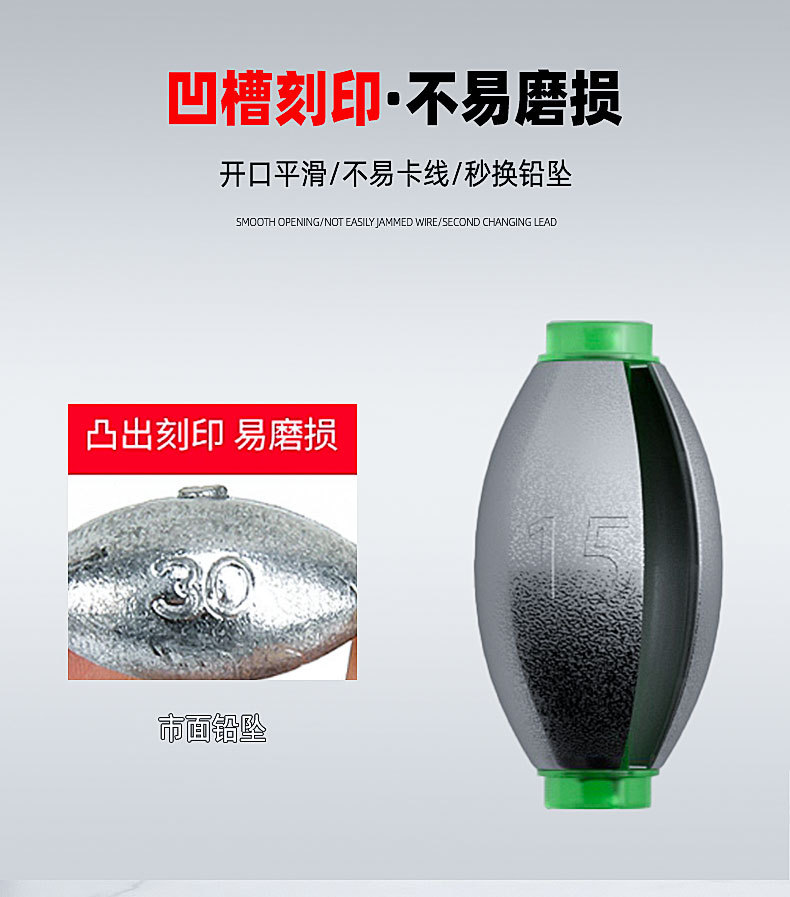 橄榄日式开口铅坠筏钓跑铅通心坠路亚空心坠套装桥筏远投钓鱼配件