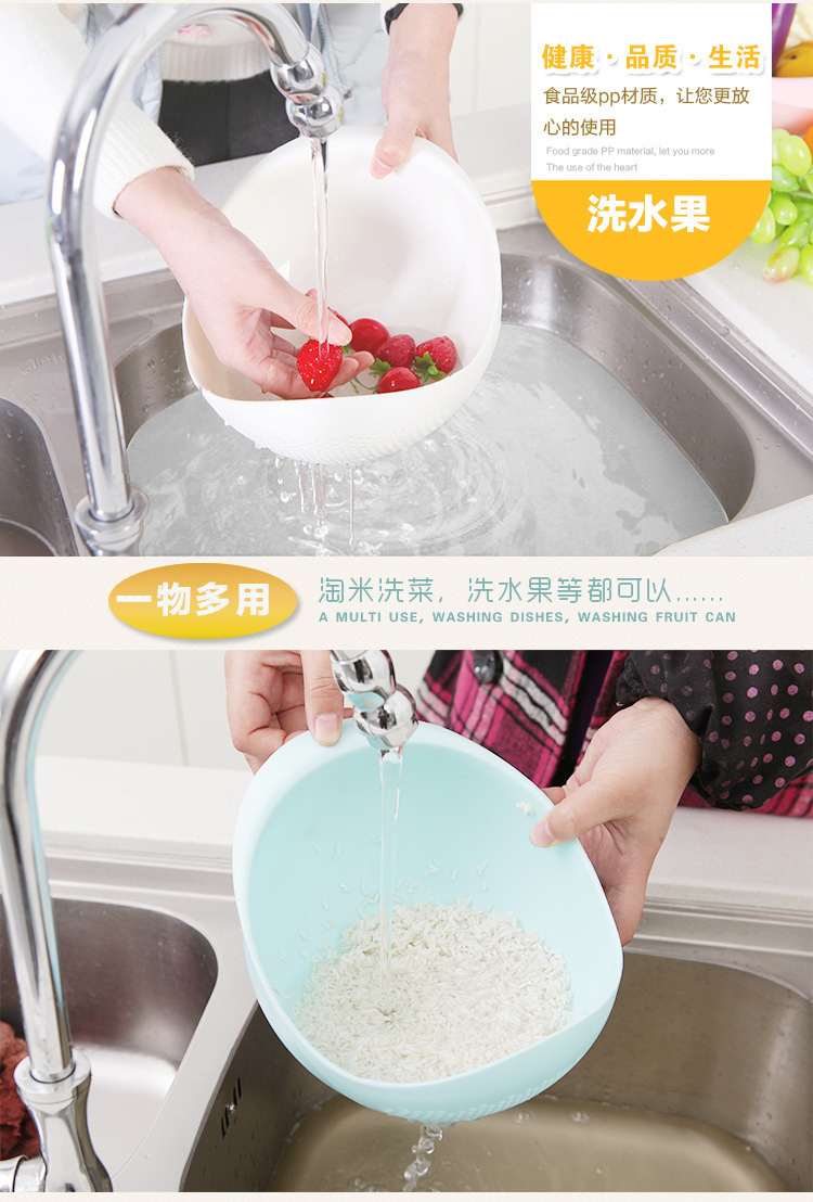 米とぎ器、野菜洗い桶、水切りざる、家庭用野菜洗いかご、キッチン用プラスチックフルーツバスケット、米とぎツール、フルーツプレート卸売