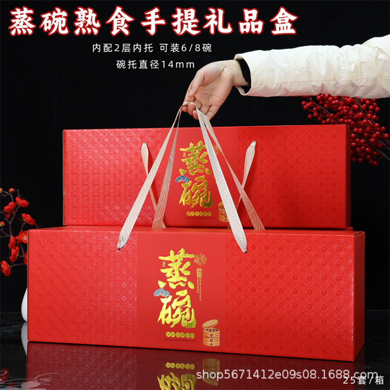 ユニバーサル蒸しボウルポータブルギフトボックス伝統的な8/6大ボウル豚カルビ煮込み梅野菜豚肉包装箱在庫あり