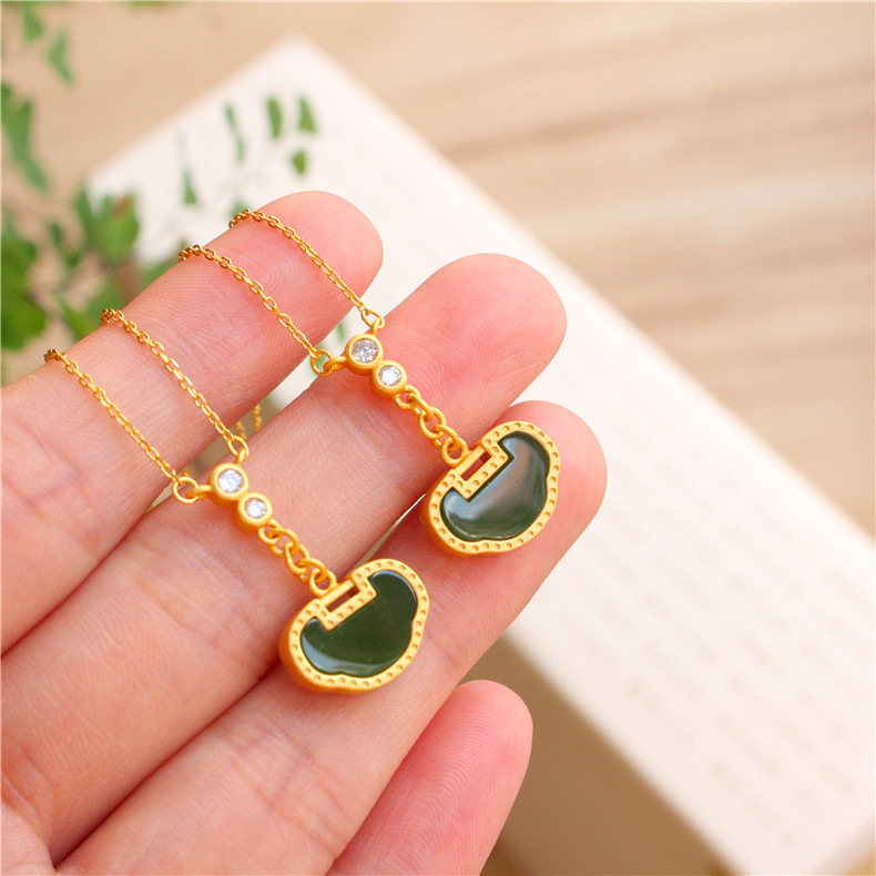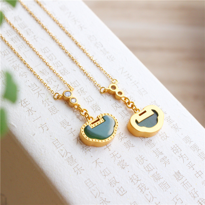 天然模造和田玉環環相ボタンDIY双環平安ボタンペンダント緑双環ボタンアクセサリー部品