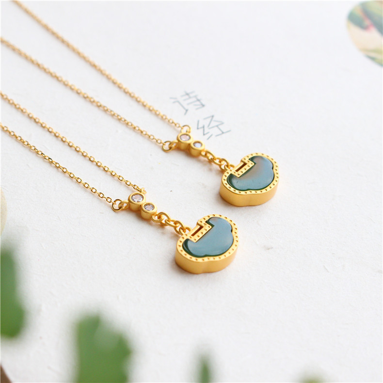天然模造和田玉ブレスレット女金帛玉青玉緑松石蓮蓬メッキ純銀レトロ宮廷藍蓮