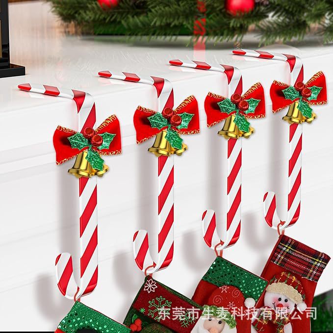 跨境金属防滑圣诞壁炉挂钩拐杖糖长筒袜挂钩圣诞派对装饰带蝴蝶结