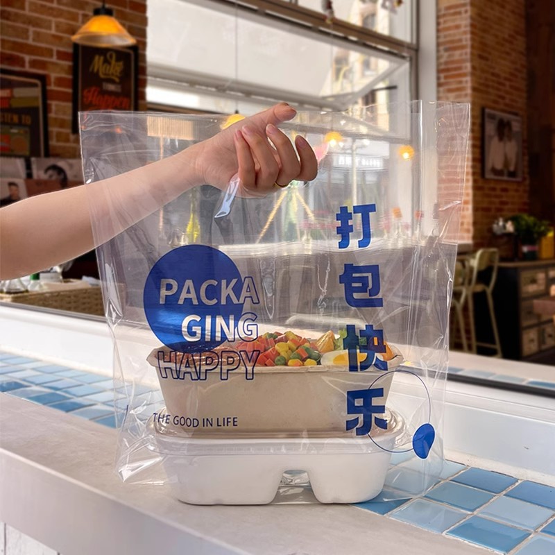 使い捨てテイクアウト包装袋、プラスチック包装袋、食品、ファーストフード、ベーカリー、パン袋、持ち手付き、厚手