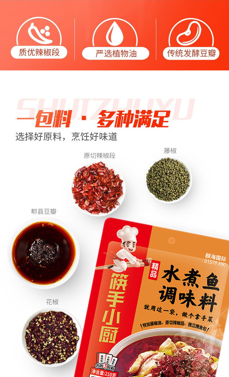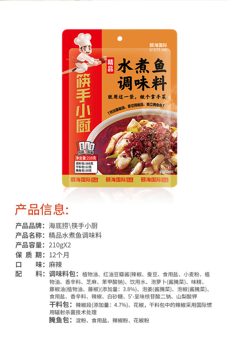 海底すくい水煮魚調味料210g四川水煮肉片鍋物生地沸騰麻辣魚カエル調味料