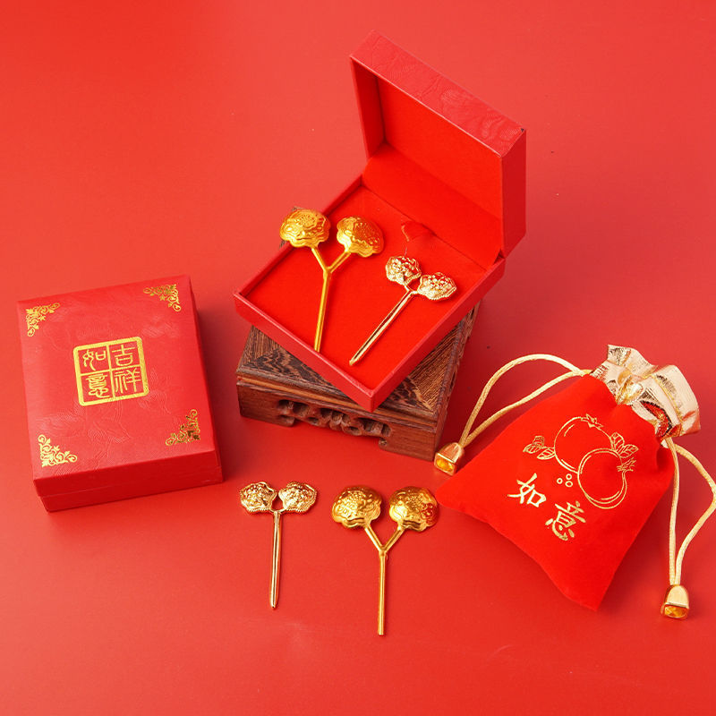 潮汕の結婚用品の高級な金メッキの如意は髪を挟みます。