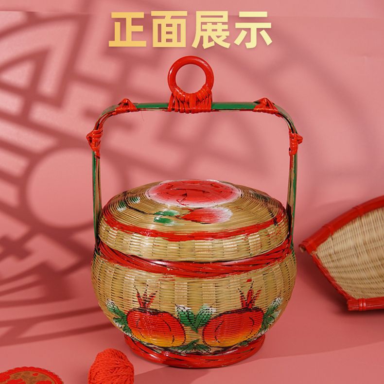 Y 0ez卸売り竹編手提げかご結婚弁当箱手提げかご果物かご祝い事赤かご月餅ギフトかご収納