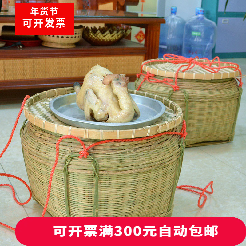 竹编提篮带盖子手提竹筐采摘篮外出竹箩筐拜神篮头层竹青影视道具