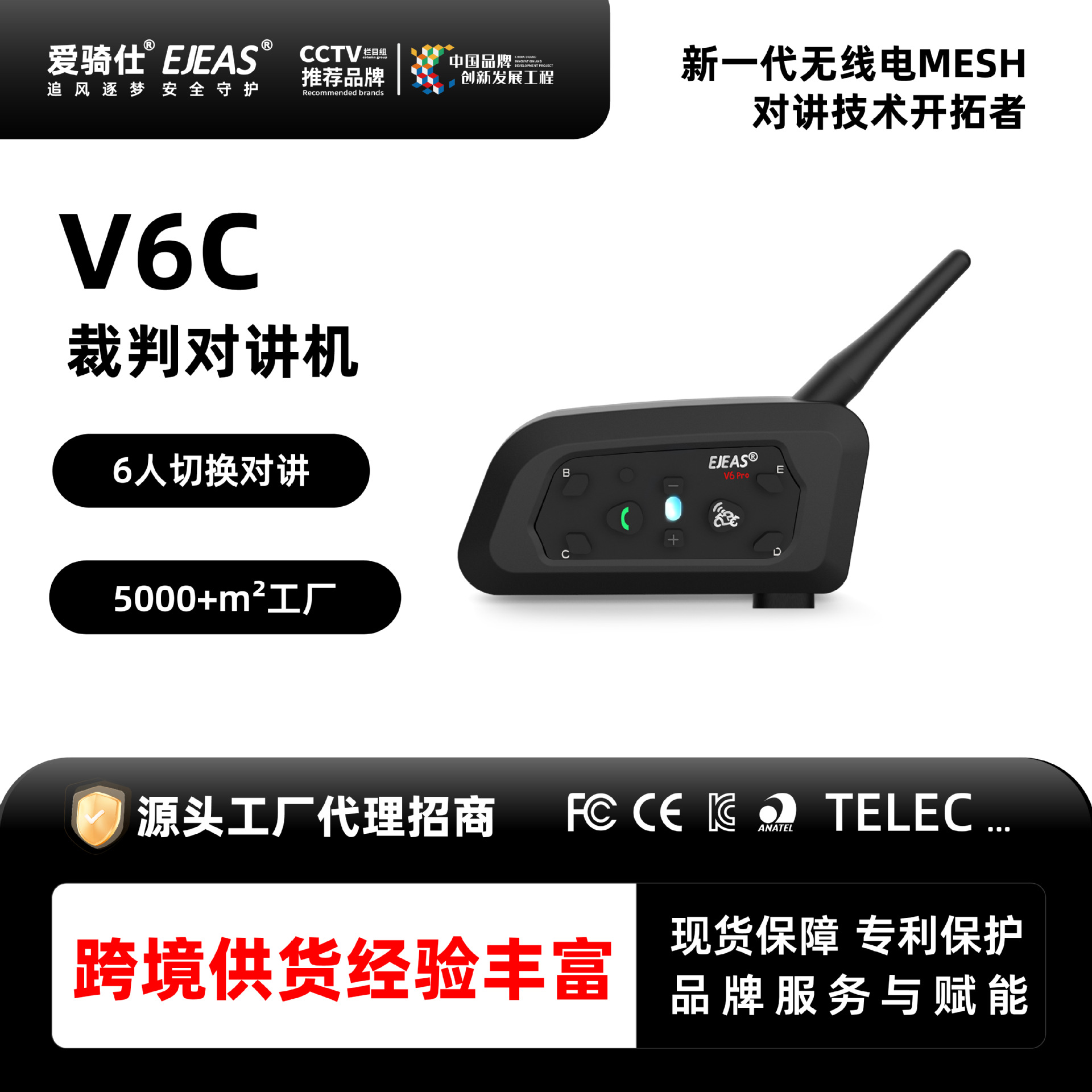 EJEAS 全二重 CVC ノイズリダクション V6C シングルパック 6 人スイッチングインターホン審判 Bluetooth インターホン越境卸売