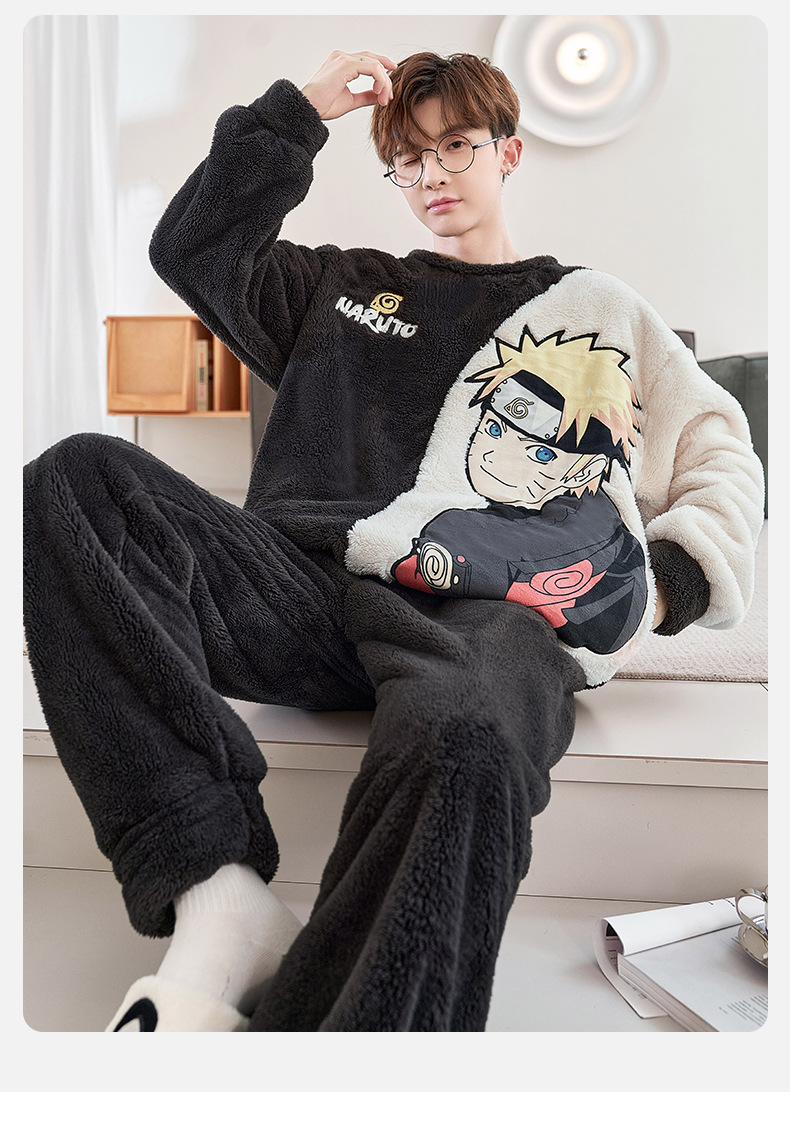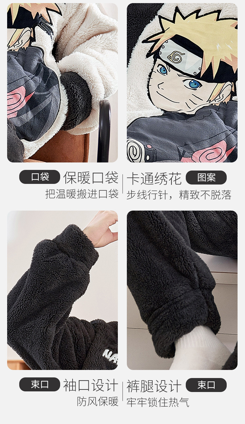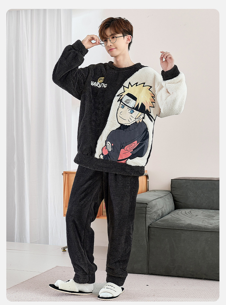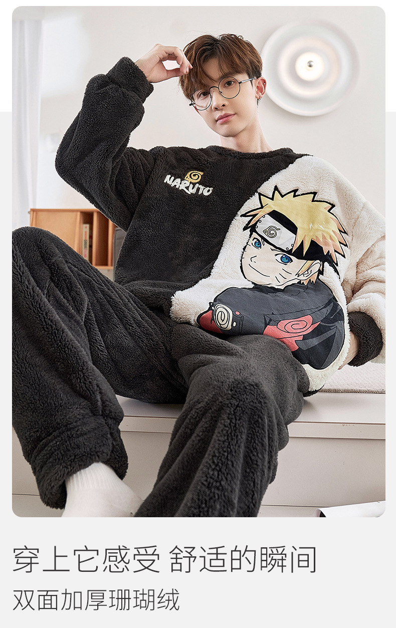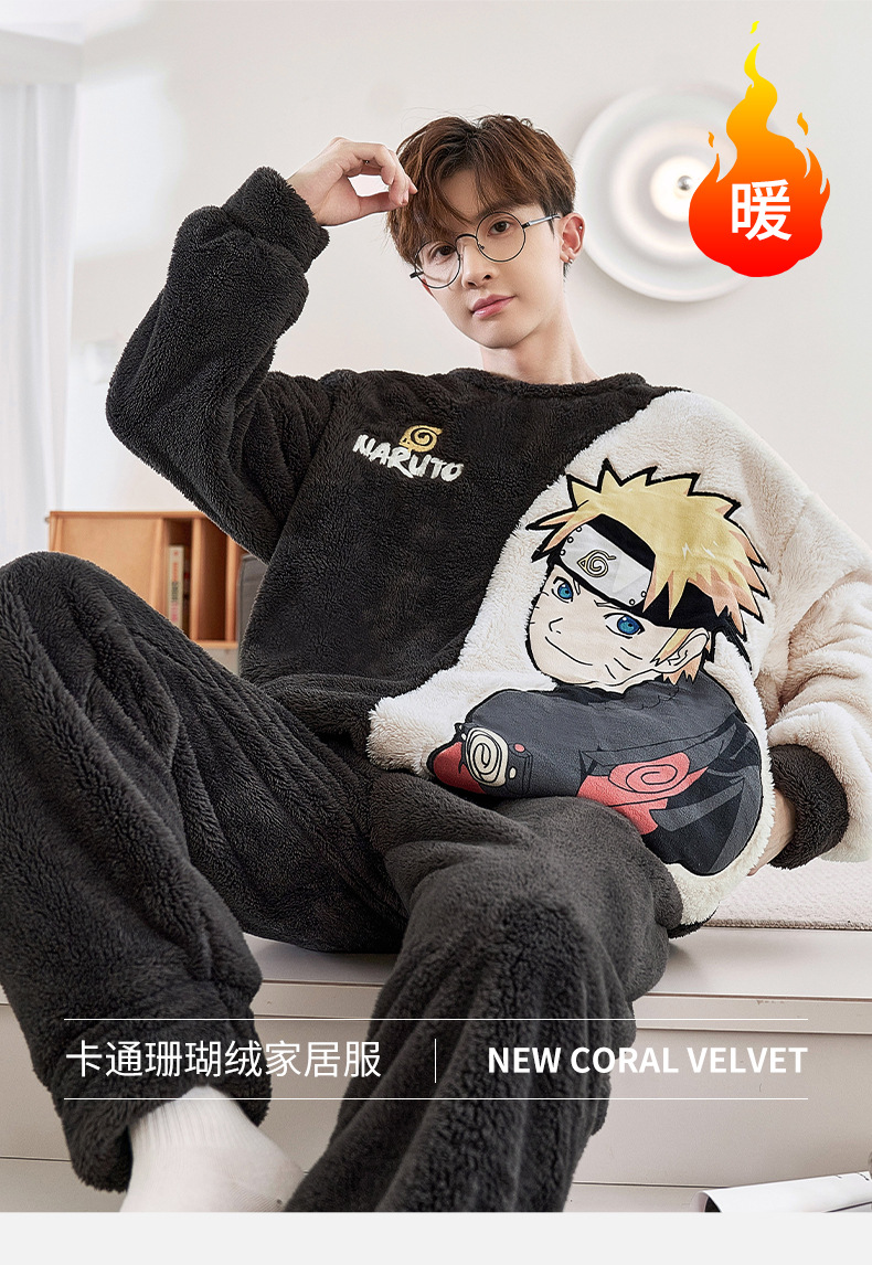 冬のベルベットのパジャマ男性とベルベットの厚い保温アニメと帽子のフランネル青少年の家庭服セット