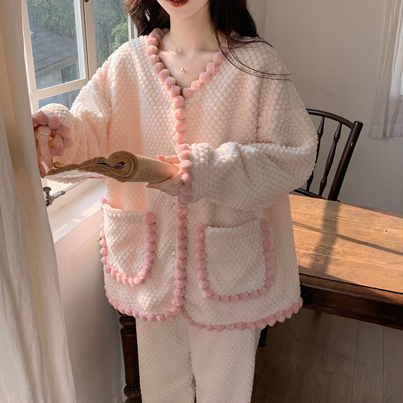 コーラルベルベットのパジャマ冬の女性のベルベットは、2024の新しいフランネル秋冬の春秋家庭服セットを厚くした
