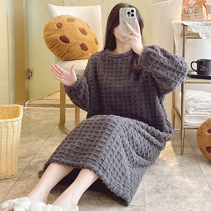 パジャマの女性の冬のサンゴのフランネルの暖かい長袖の寝ているスカートの春と秋の女性のベルベットの厚い家の服