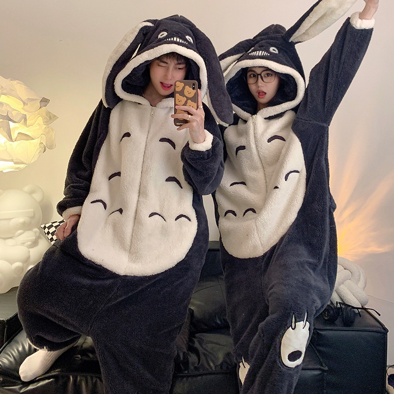 かわいいモンスターのパジャマの女性は冬にベルベットを厚くして、ベルベットのパジャマの冬の帽子の家の服を着ています