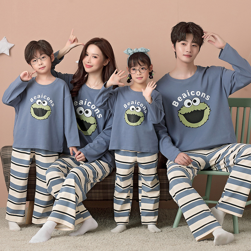 親子パジャマ一家三口四口長袖春秋親子セットアニメ純綿8歳9子供ホームウェア