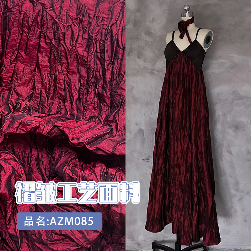ゴシックダークスタイルのテクスチャー生地プリーツ2色光沢のある両面デザイナー生地スカート生地