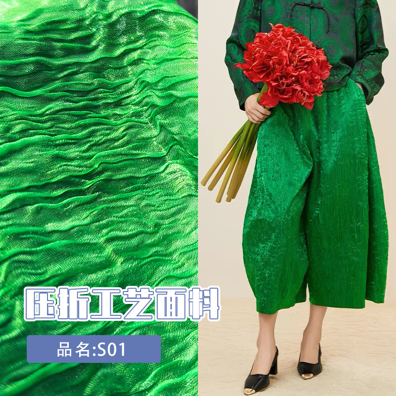 反射変色金属色スライド糸シワシワ舞台ショーファッションシワ生地diyデザイナー