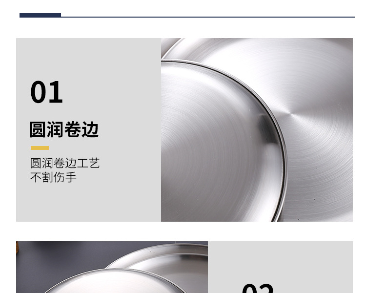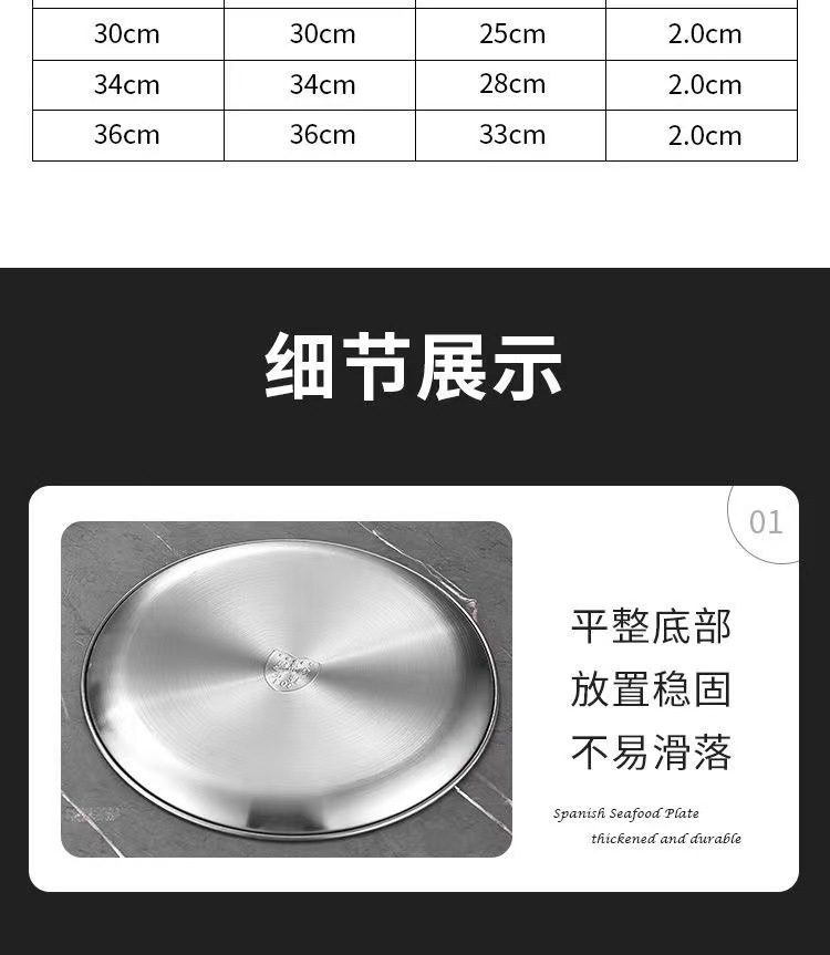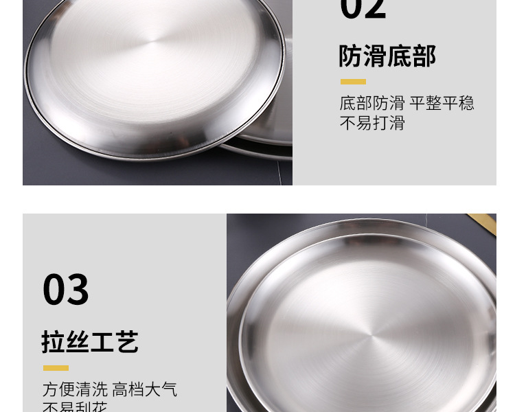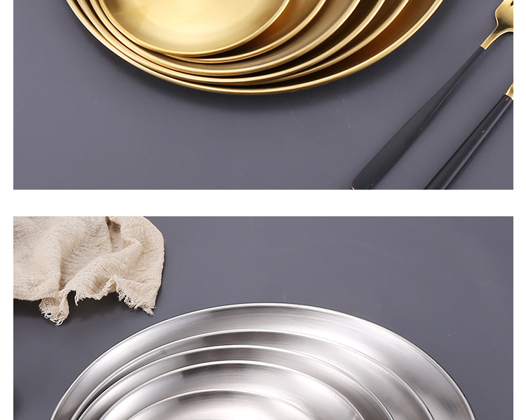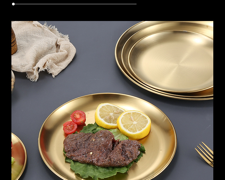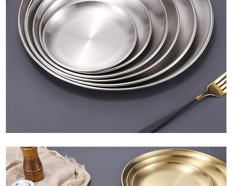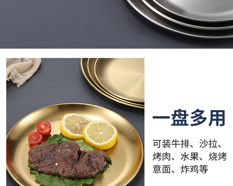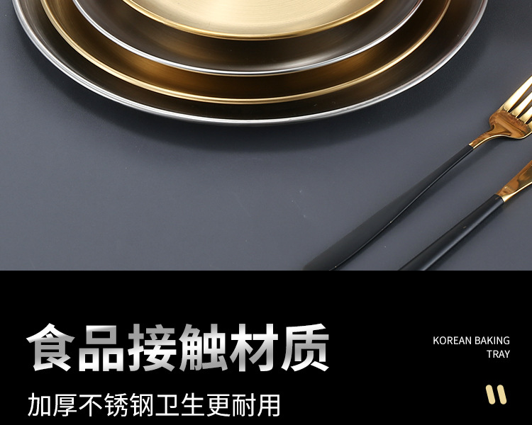 国境を越えた韓国ステンレス鋼プレートゴールデンバーベキュー肥厚フルーツプレートラウンドプレート家庭用浅いプレートボーンプレートトレイベーキングパン