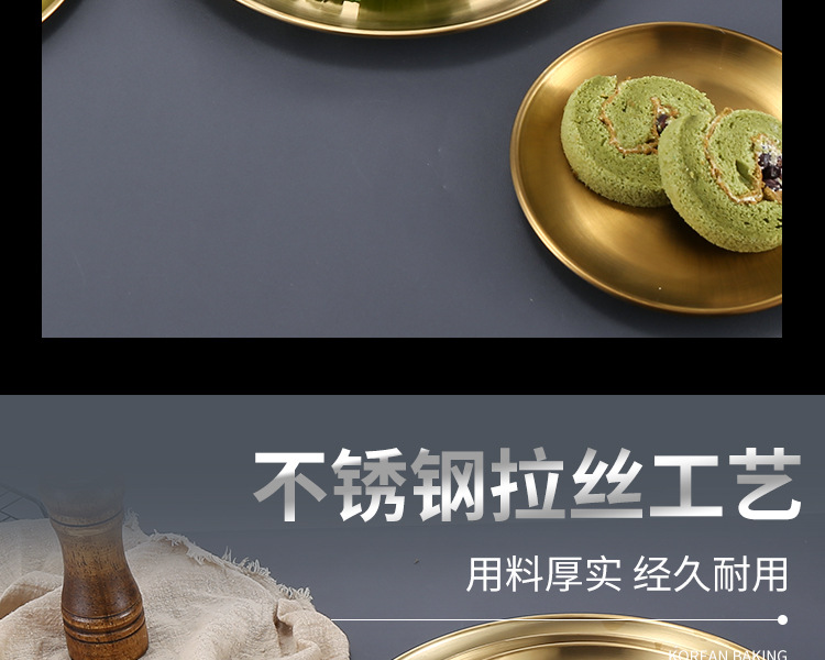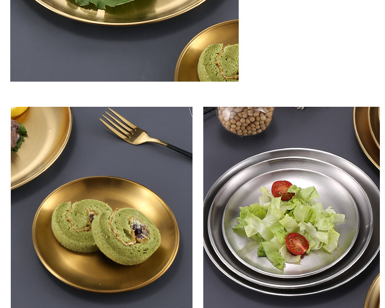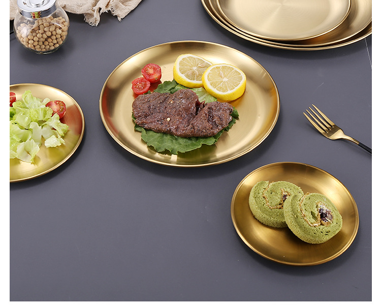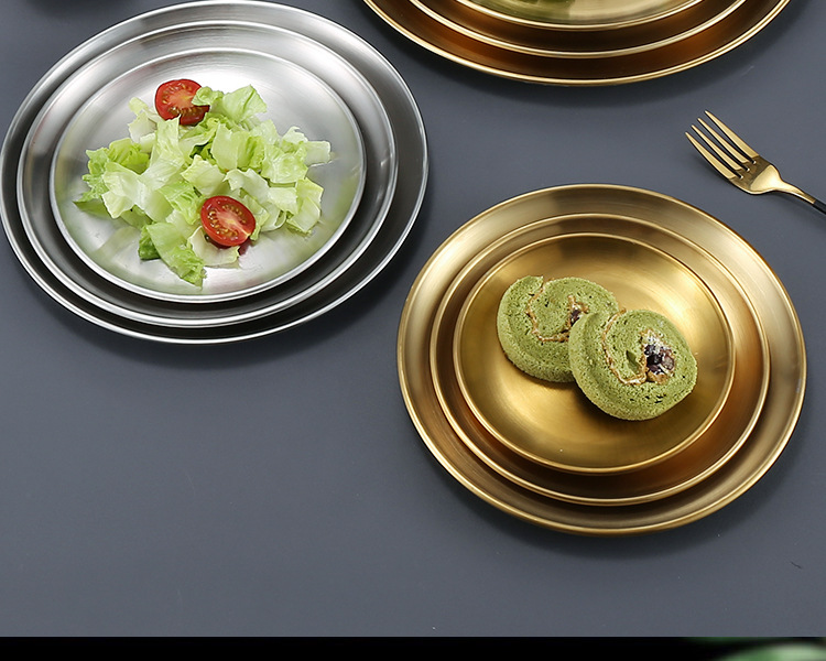 韓国式304ステンレス円盤商用金色焼肉皿果物ケーキ皿骨皿浅い皿