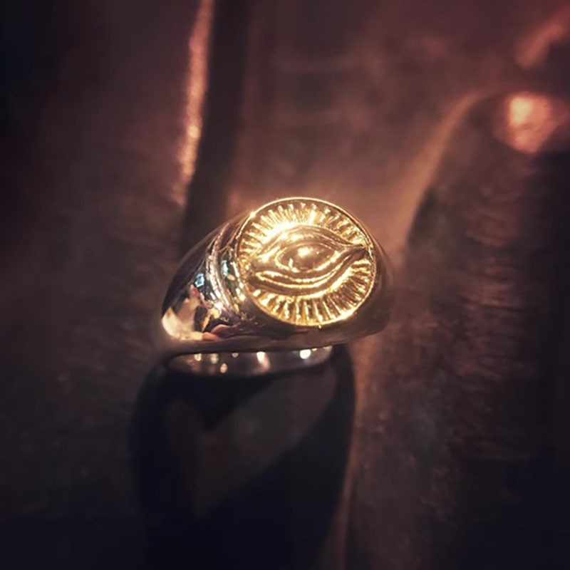 オリジナルの大衆デザイン純銀ホルス神の目祈りの手覇気開口指輪泰銀男指輪