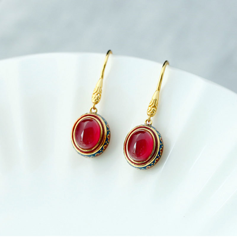 天然模造和田玉滴ゴム祥雲イヤリングエナメル色民族風軽豪華なジルコンルビーイヤリングアクセサリー