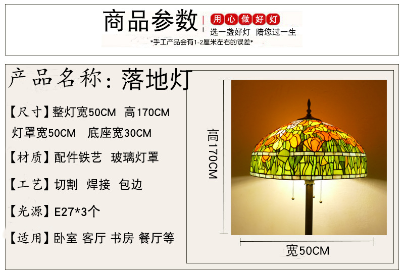 客間寝室の大型家庭装飾品アメリカのレトロなガラスは手作りのledフロアランプ卸売りメーカーです