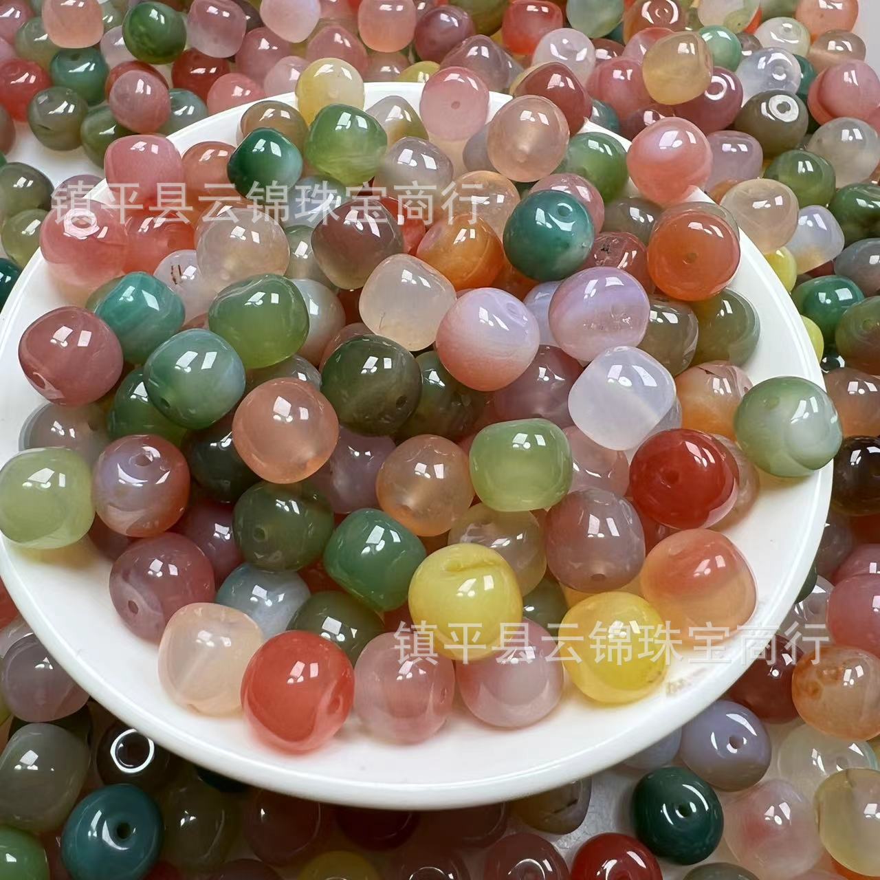 纯天然盐源玛瑙老型多宝彩色半成品散珠DIY手链项链玉髓马卡龙色