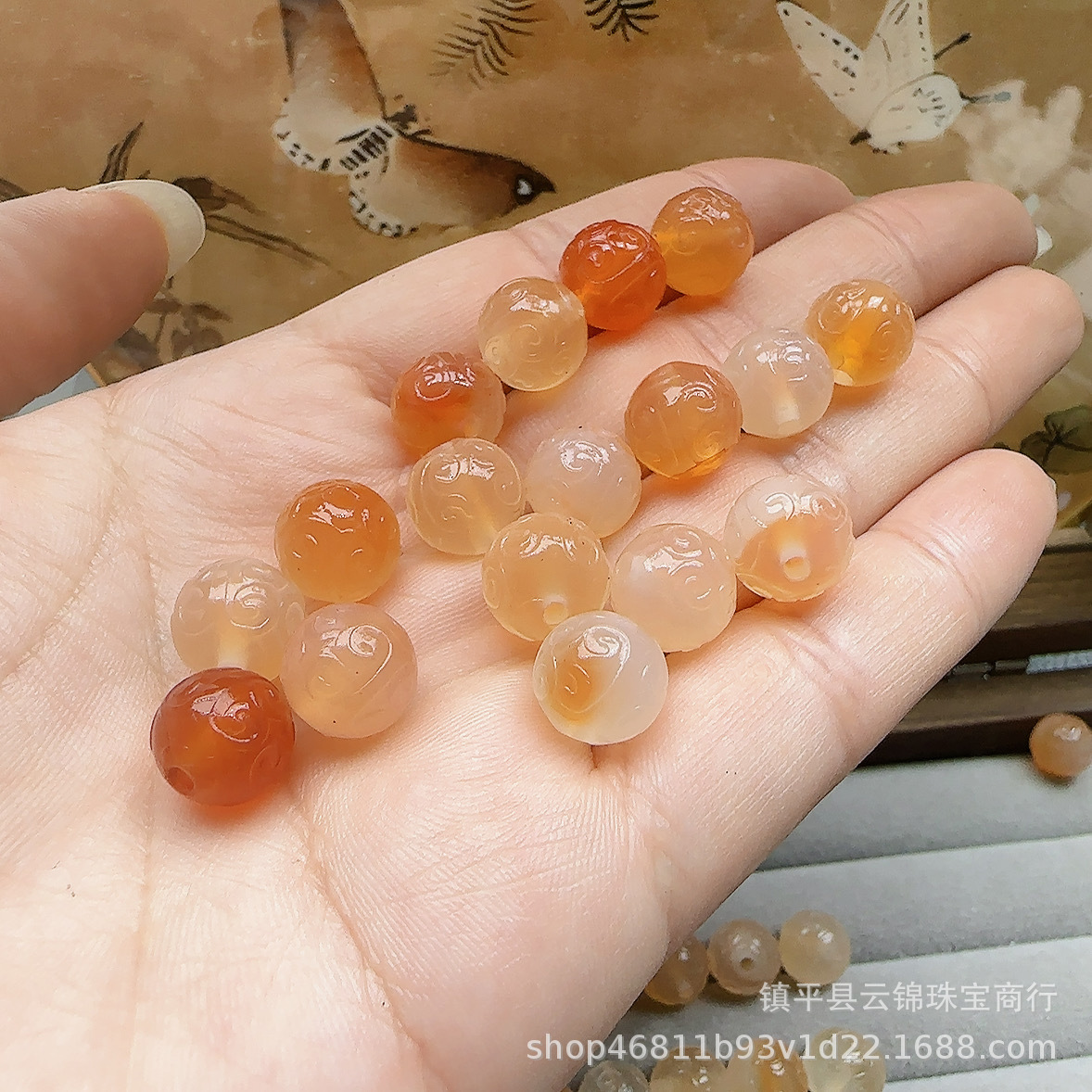 天然粉橘色冰糖心玛瑙盐源回纹珠配件diy手串文玩佛珠配珠散珠子