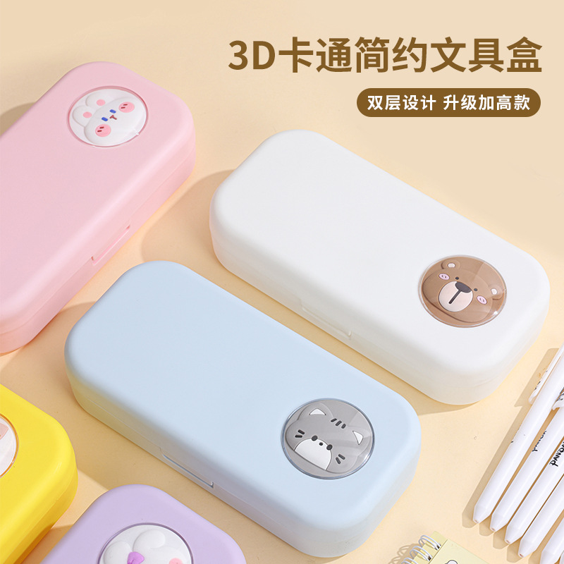 3D漫画シンプルな文房具ボックスかわいい学生大容量二重鉛筆ボックス高颜値文房具収納ボックス