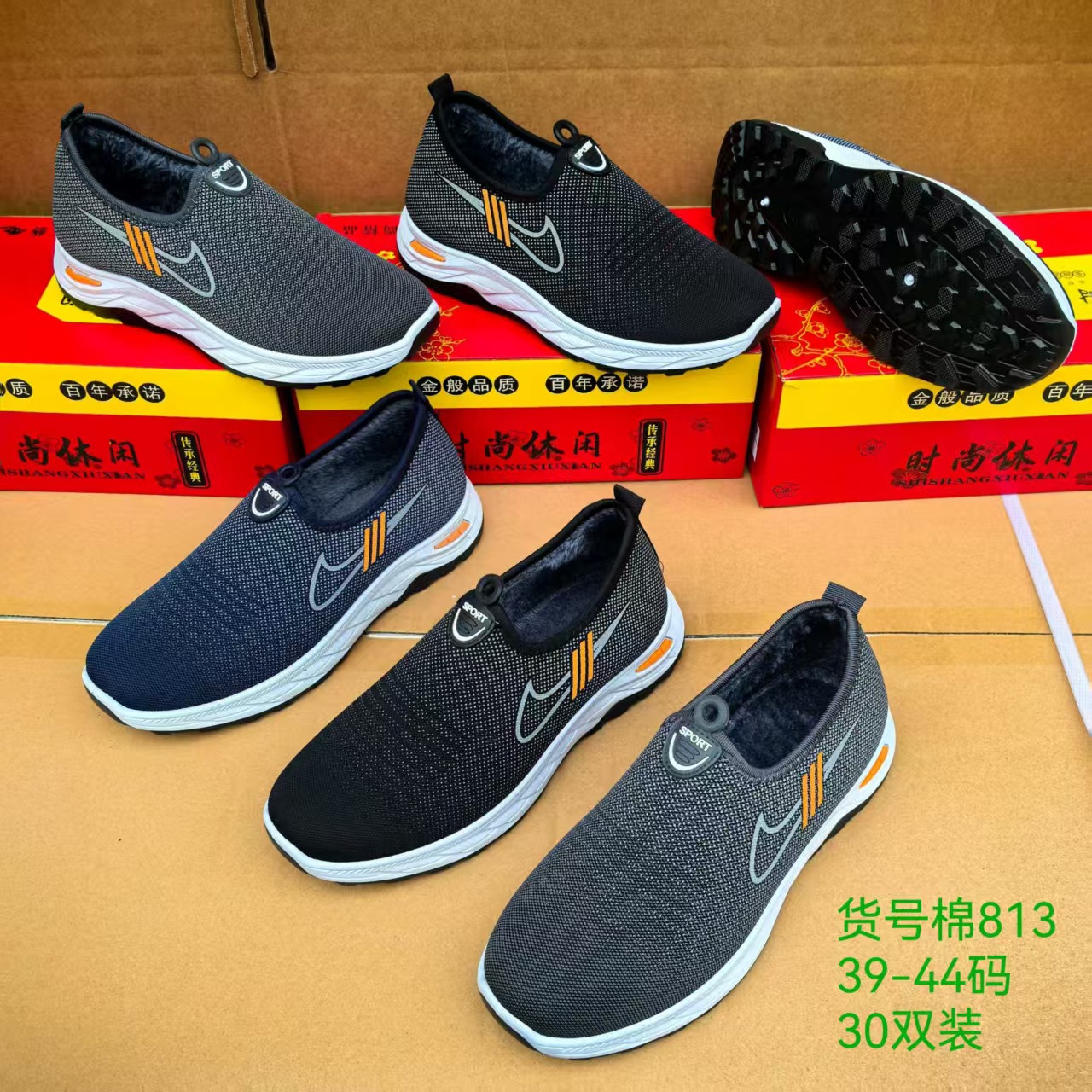 老北京棉鞋男经典加绒运动版休闲一脚蹬棉鞋男保暖中老年爸爸棉鞋