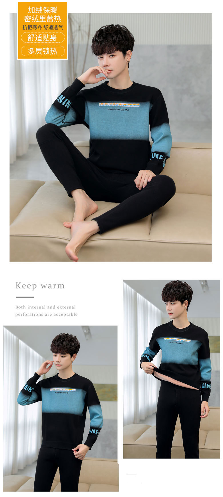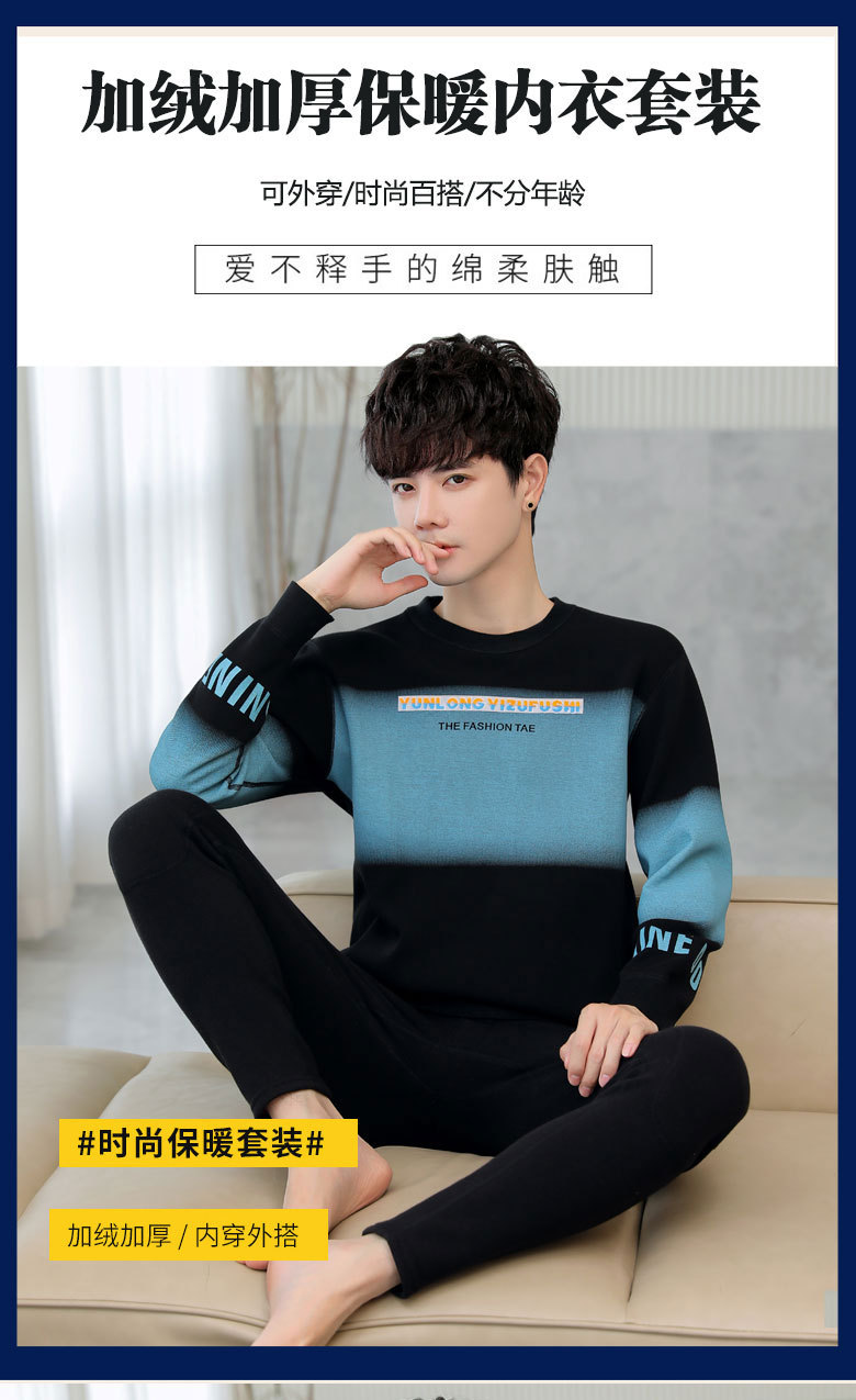 青少年の保温下着の男性は厚い加毛の中高生の大きい子供の純綿の秋の服の秋のズボンの学生のスーツの冬をプラスします。