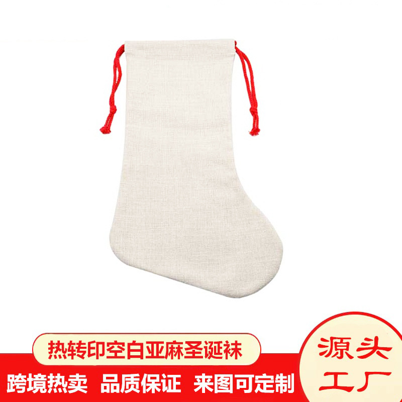 空白のクリスマスソックス、リネン素材、熱転写クリスマスソックス、昇華プリントクリスマスソックス、両面DIY印刷