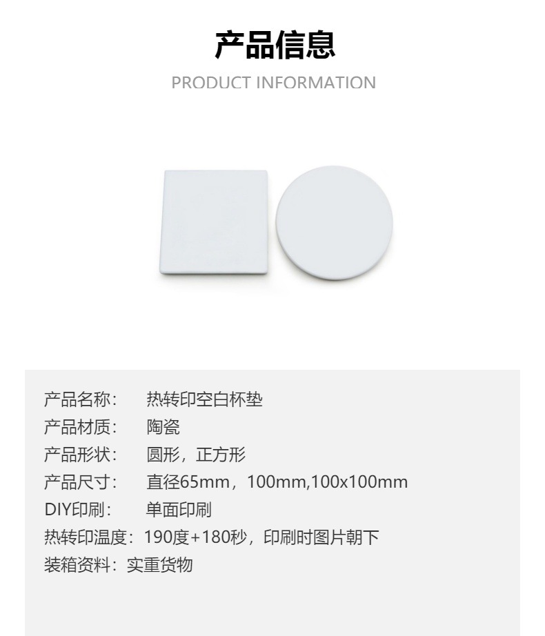 クロスボーダーアマゾンTEMU热い贩売热転写印刷空白地印刷空白地セラミックコースターはロゴを印刷することができます