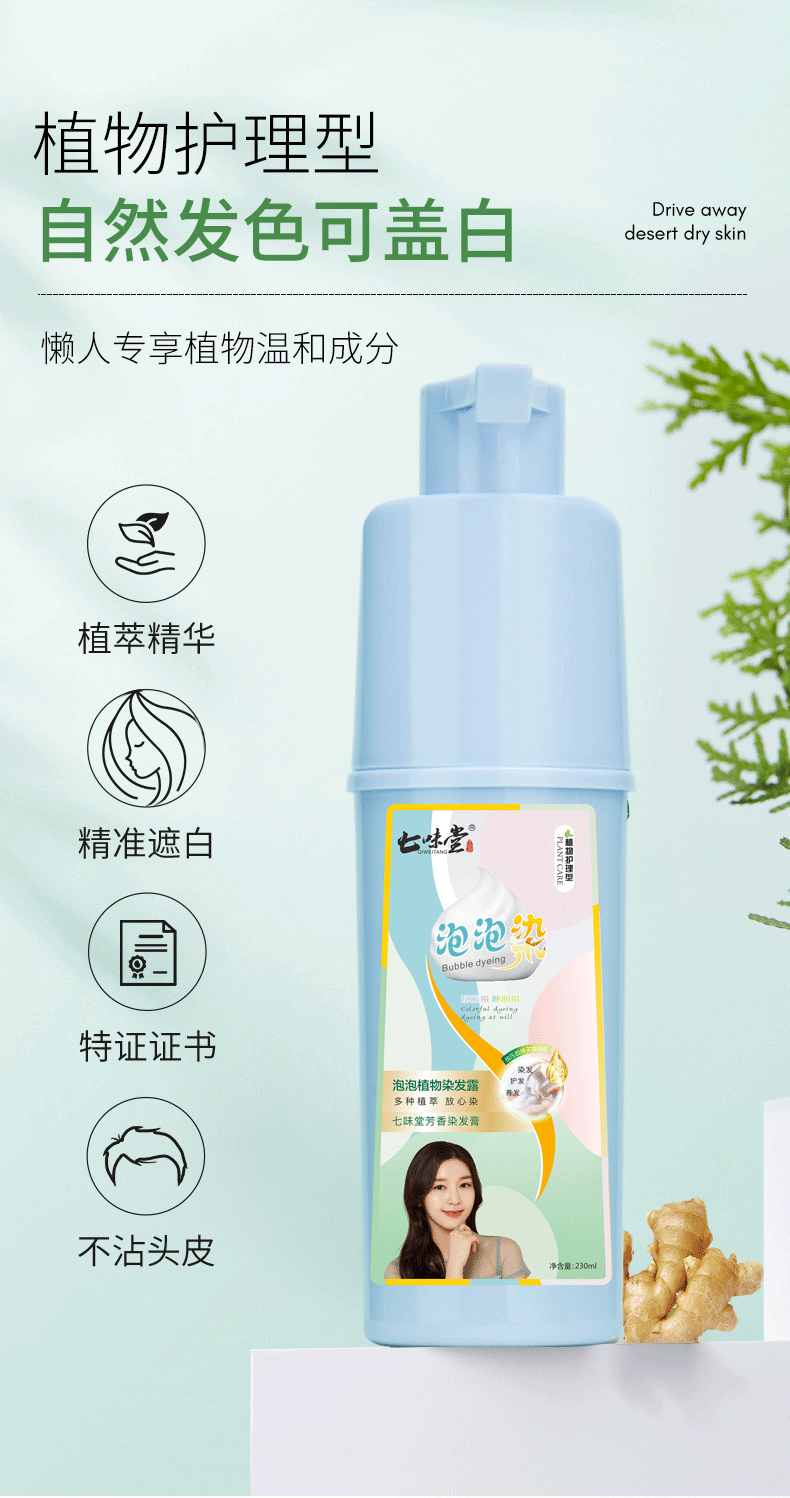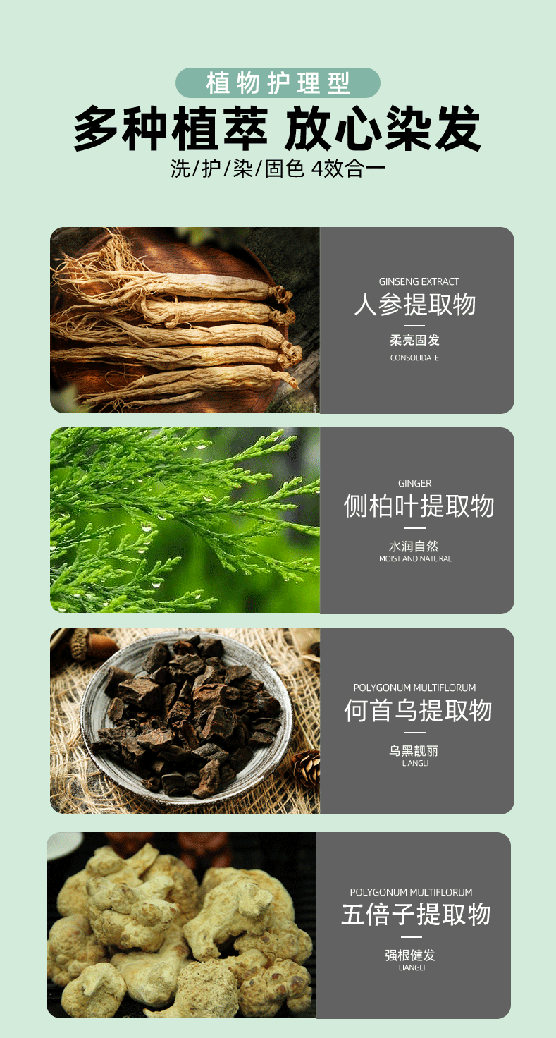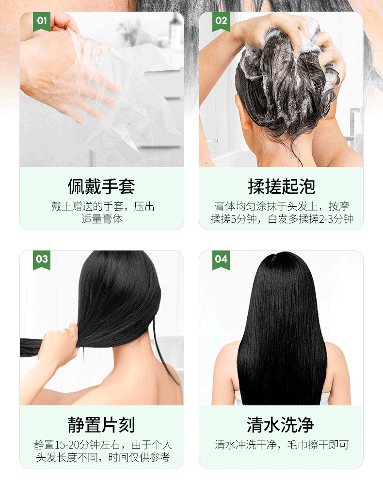 国境を越えて起爆した中華婵洗泡染毛剤植物精粋洗髪染毛黒髪染毛ペースト黒髪卸売り