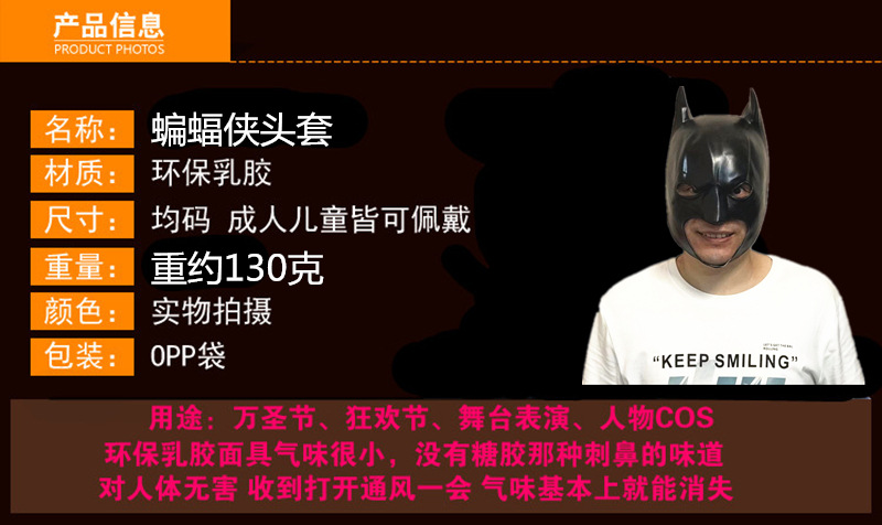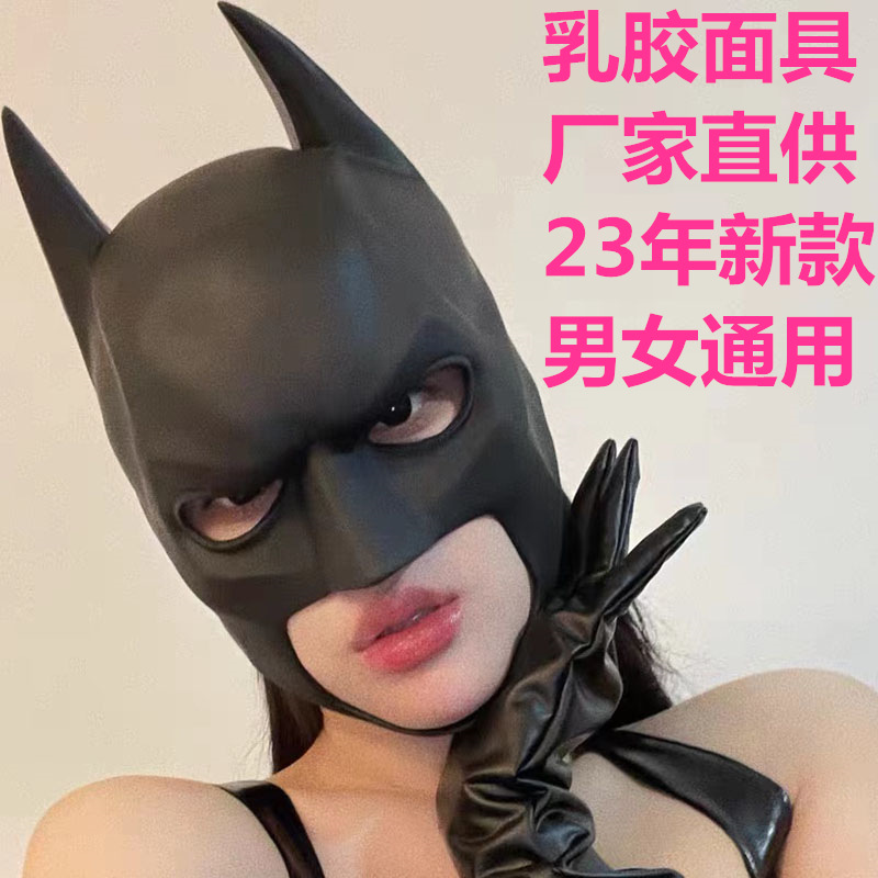 跨境爆款乳胶蝙蝠侠面具头套万圣节舞会派对cosplay男女款加厚款