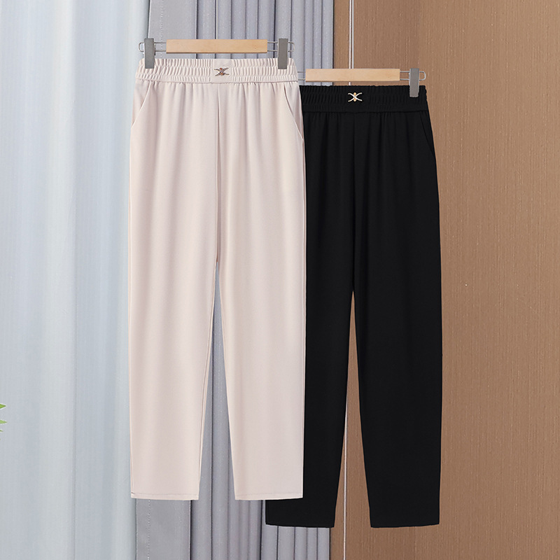 ドロップシッピング夏ママストレートパンツ薄い中年女性のパンツ弾性ウエスト無地通気性クールパンツ9点パンツ