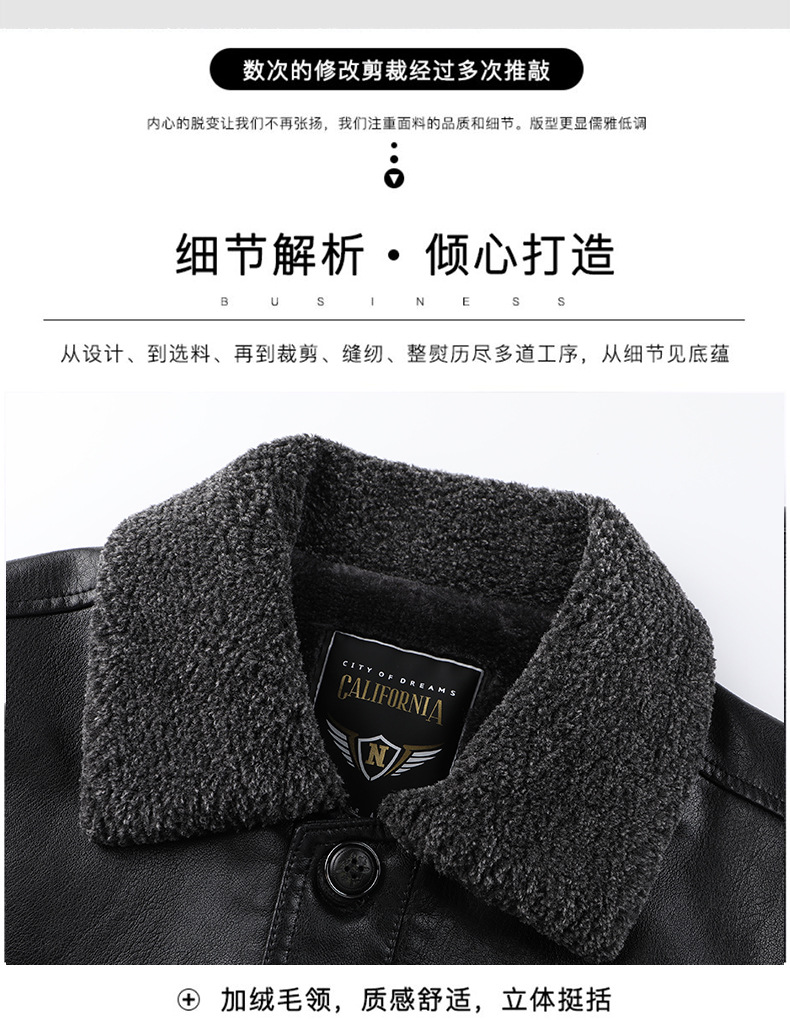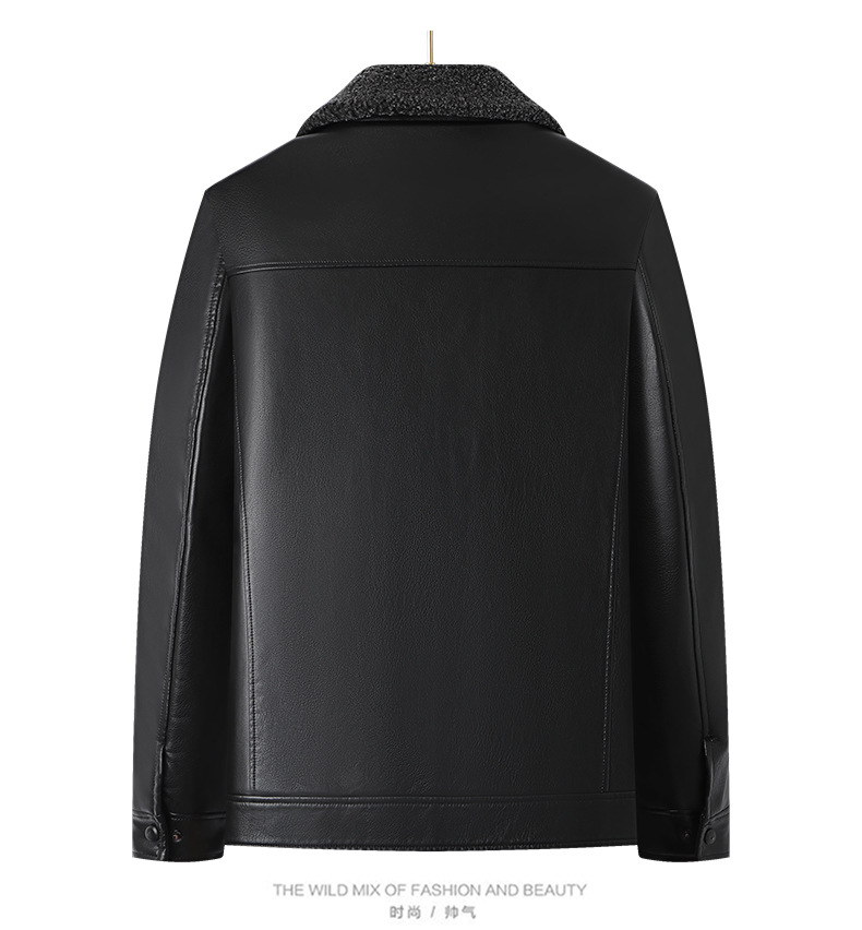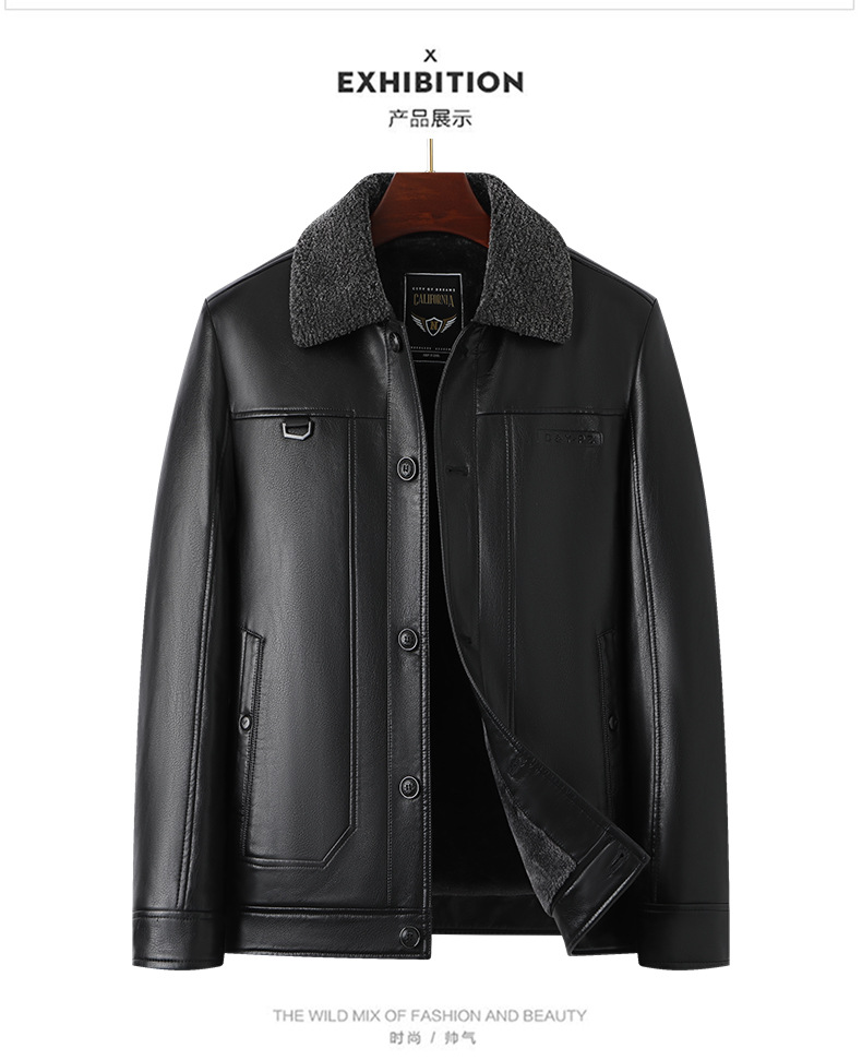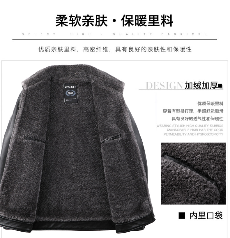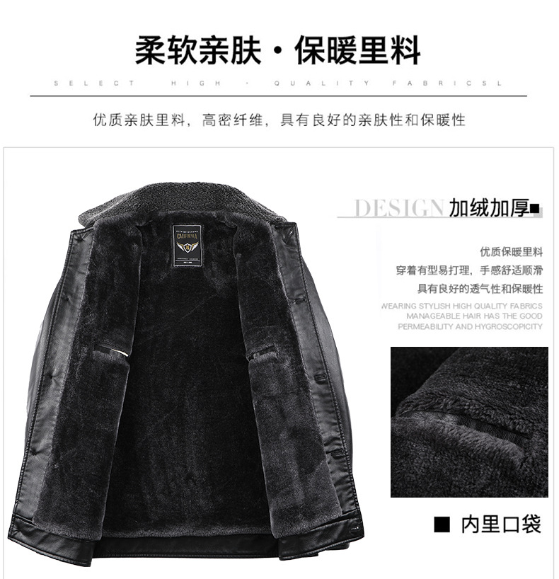父の冬服puコートとベルベットの厚手50歳の中高年男性服ビジネスカジュアル防水防風ジャケット